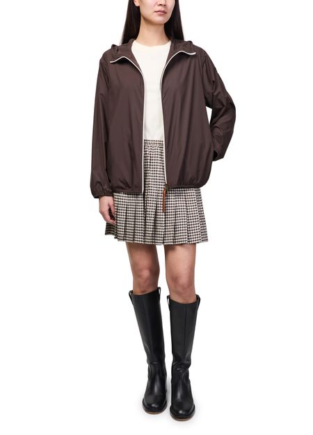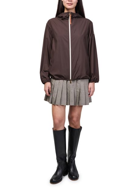 Reveal Moncler's short windbreaker jacket, a modern silhouette defined by its cropped length and sleek zipper closure. Side pockets and a subtle logo on the side add functional flair, while long sleeves ensure comfort. This versatile piece transitions effortlessly from urban outings to relaxed weekends.