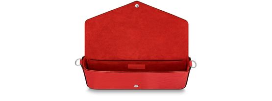Louis Vuitton's emblematic Epi leather complements the simple yet elegant design of the Pochette Félicie. This envelope-style pouch, which contains two removable pockets, adapts to every occasion. Thanks to a removable silver-tone chain, it also offers a variety of carry options: on the shoulder, across the body or in the hand.