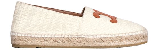Celine's Flat espadrille exudes effortless elegance with its almond elongated toe shape and signature triomphe leather patch. Hand-stitched to perfection, the slip-on design features an authentic rope insole with a padded leather patch. The triomphe patterned rubber outsole adds a touch of sophistication, making this Spanish-crafted piece a must-have for chic comfort.