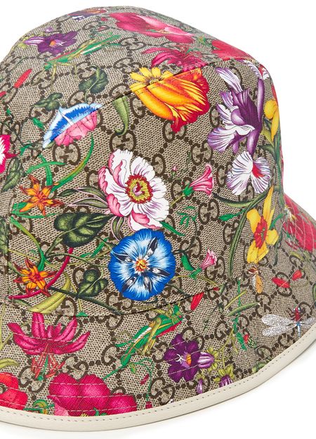 Protect your hair under this GG Fedora hat by Gucci. Colourful flowers intertwine with the symbols of the iconic GG Supreme fabric.