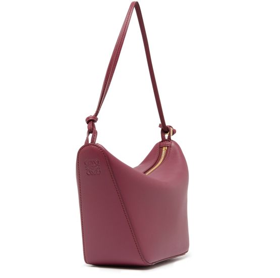 Discover Loewe's Hammock Mini Hobo Bag, a masterpiece in smooth leather with a sophisticated silver finish. This bag offers a single compartment with a zipper closure and an adjustable thin strap for versatile wear. Embossed with Loewe's iconic logo and adorned with visible topstitching, it reflects timeless elegance.