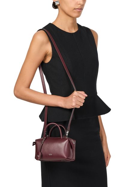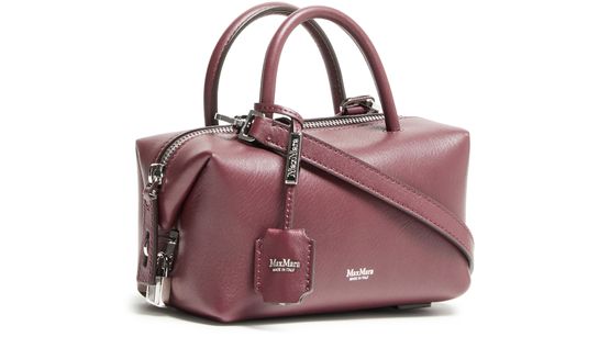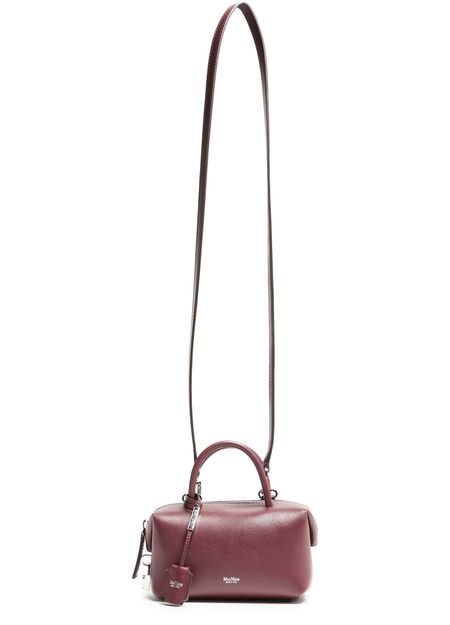 Reveal the Max Mara Holdall S handbag, crafted from smooth leather. This sleek mini bag features double handles and a thin adjustable, detachable strap for versatile wear. With visible topstitching, a front logo in silver letters, and silver finish, it’s both fashionable and functional, offering interior card slots and a single compartment with a zipper closure.