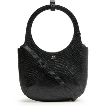 Indulge in Courreges's Holy Viper handbag, a statement piece that combines a sleek snakeskin pattern with a metallic logo on the front. Featuring double handles and an adjustable thin strap, it offers versatile carrying options. The silver finish and snap-button fastening add a touch of elegance to its single compartment interior.