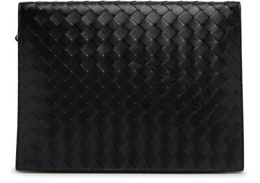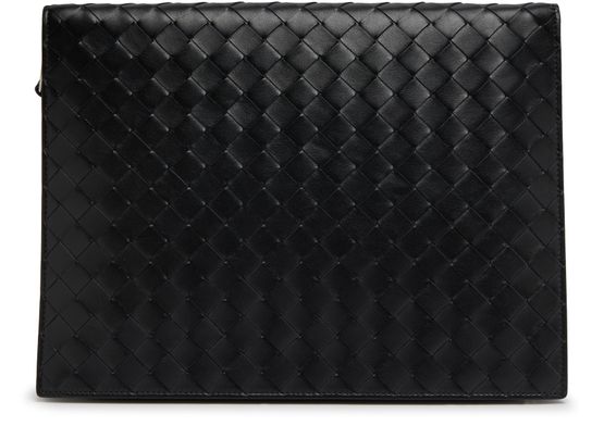 Bottega Veneta's briefcase is crafted from smooth leather, featuring an iconic Intrecciato weave. The medium size design includes a front pocket for convenient storage, a carry handle for easy transport, and a zipper closure to secure your belongings. Perfect for the modern professional, this piece is meant to be worn in the hand for a sophisticated look.