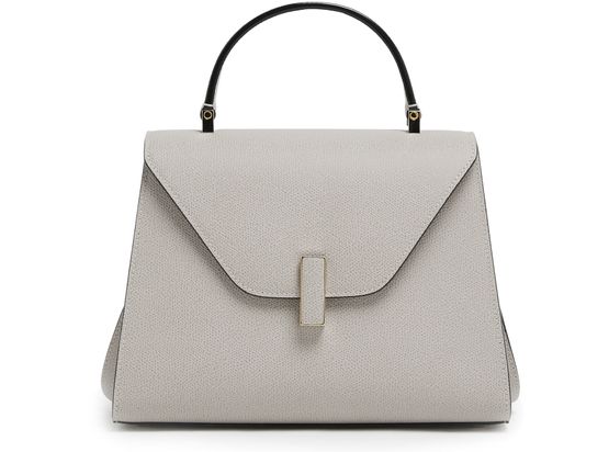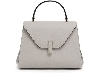Reveal Valextra's Iside handbag, a masterpiece of grained leather craftsmanship. This shoulder bag features a single handle and a thin, adjustable, detachable strap for versatile wear. The twist lock closure secures a single compartment lined with contrast fabric, highlighted by visible topstitching and a gold finish.
