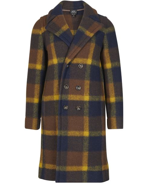 The Jane coat is designed by APC. This piece with a longline cut combines a button closure and lapel collar. It is enhanced by its large check print.