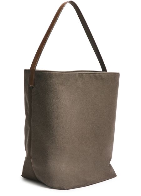 Reveal The Row's large n/s park tote bag in cotton canvas, a statement of refined craftsmanship. The single handle and silver clasp complement the visible stitching, while the spacious interior compartment ensures effortless organization. Silver-finish details add a modern touch to this versatile tote.