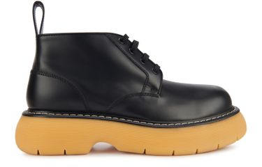 Bottega Veneta brings its signature touch to these men's leather boots. This model features a broad sole and a sturdy and comfortable structure.