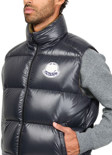 Reveal Moncler's Lipsi sleeveless down jacket, a regular-fit puffer jacket that embodies modern elegance. Featuring a high neck and padded texture, it offers style and comfort. The zipper closure, chest logo, and practical side pockets enhance its functionality, making it perfect for varied occasions.