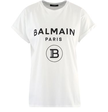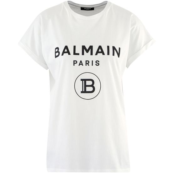 The traditional logo t-shirt acquires a sporty, modern look with designer Balmain's name and logo on the front of this piece.