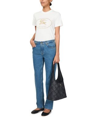 Introducing the Burberry Knight Design t-shirt, a chic blend of style and heritage. This short-sleeved top features a crew neck and a printed front logo, embodying the iconic equestrian emblem. Perfect for both casual and sophisticated ensembles, it adds a touch of elegance to any wardrobe.