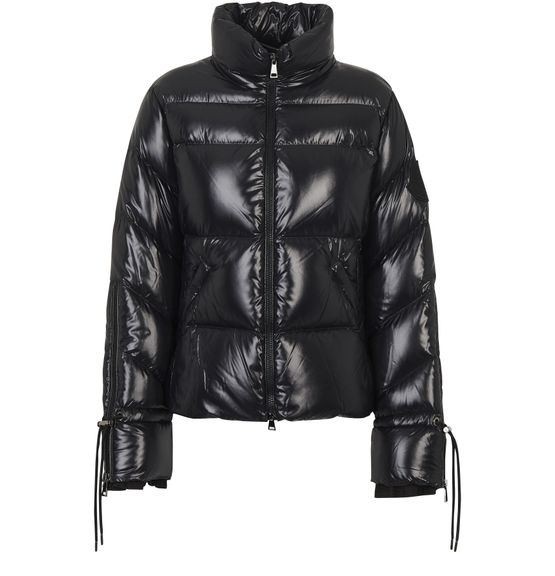 The Madame puffer jacket is a Moncler signature piece. It combines a zippered closure and a high collar. It is elevated by a shiny finish and flared sleeves.