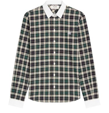 Discover Celine's Mia shirt in tartan cotton. The Triomphe embroidery adds a touch of sophistication to its classic fit, complemented by a contrasting collar and buttoned cuffs. Rounded hem and mother-of-pearl buttons enhance its timeless elegance.