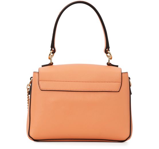 • Description : Mini bag, slender, adjustable, detachable strap, two compartments, two front pockets, golden finishes, logo on the front, calfskin leather, worn in the hand, on the shoulder or crossbody.