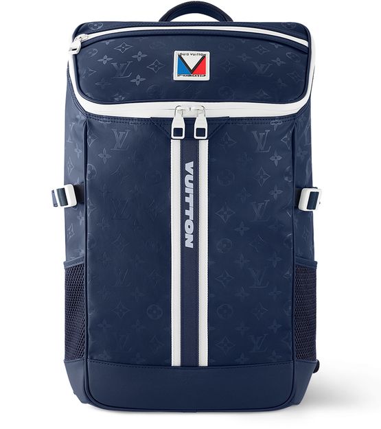 Made from lightweight Monogram Storm canvas, the Mountain Backpack combines comfort with technical innovations like the LV fast-release buckle and ergonomic straps for comfortable carry. It’s signed "Vuitton" on the front and features the America’s Cup collection patch. Two side pockets in mesh and a roomy main compartment, with a flat pocket, make it practical.