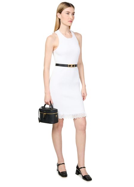 • Description : leather belt, logo buckle, gold-tone hardware, worn on the hips, logo in gold letters.