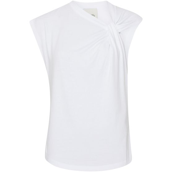 Isabel Marant's Nayda T-shirt is a sleeveless and v-neck piece that exudes sophistication. Crafted with high-quality cotton, this t-shirt features a discreet logo at the back label, adding a subtle touch of elegance. Versatile and timeless, it is a staple piece for any wardrobe, perfect for both casual and formal occasions.