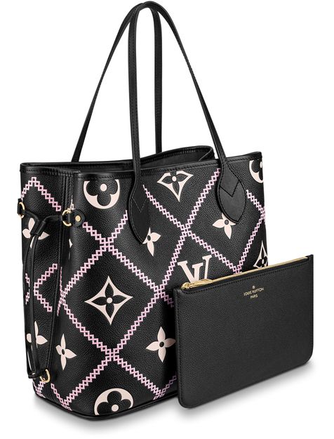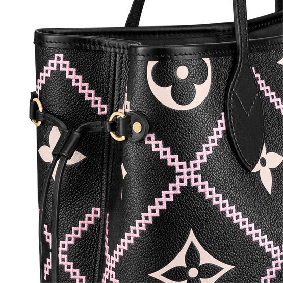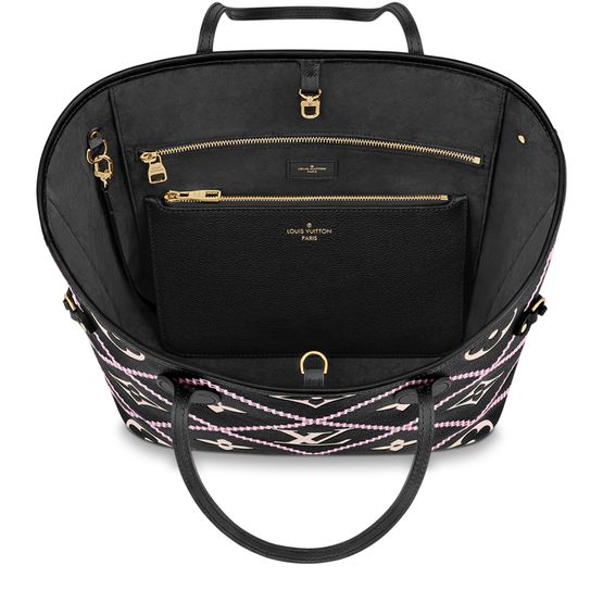 For Spring 2022 the House introduces a refined edition of the Neverfull tote in Monogram Empreinte leather. This statement piece is embellished with contrast stitching that recalls the heritage Malletage pattern, used on the linings of original Louis Vuitton trunks. The motif is printed, embossed, then impeccably embroidered on the leather, creating an on-trend, crafted effect.