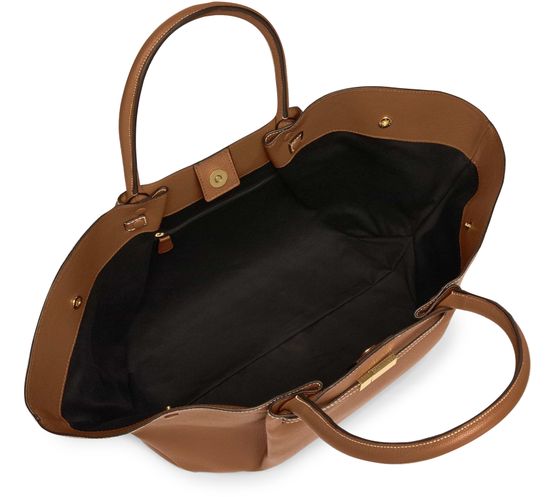 • Description : magnetic closure, single compartment, gold finish, double handles, front logo, printed logo, zippered interior pocket, visible topstitching, hand carried, worn on the shoulder.