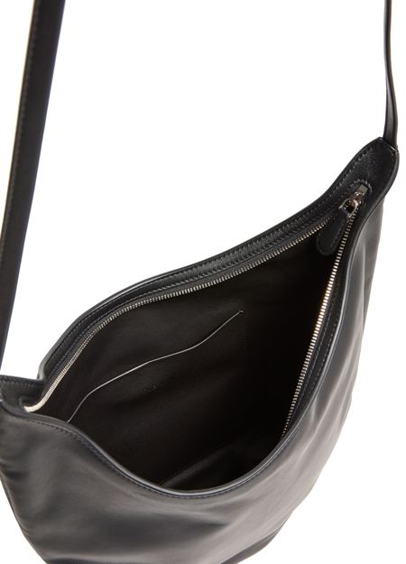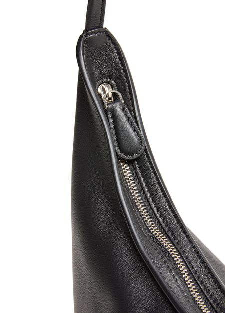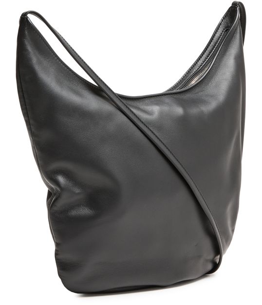 Reveal The Row's N/S Izzy bag, a masterpiece of modern design. Crafted from smooth leather, this hobo bag features a single handle and a zipper closure. Its large interior compartment and open pocket offer functional elegance, while visible topstitching adds a touch of sophistication.
