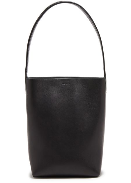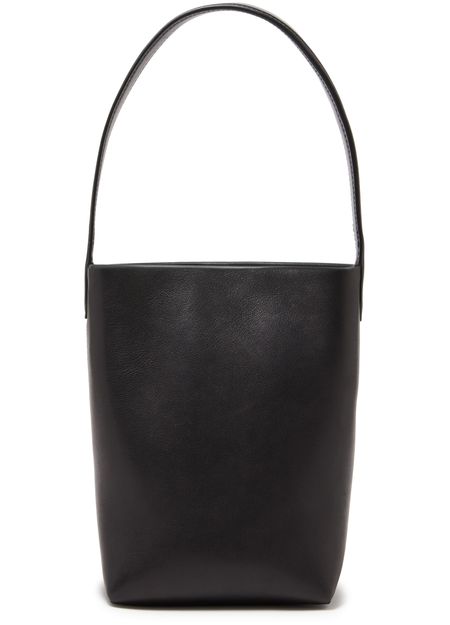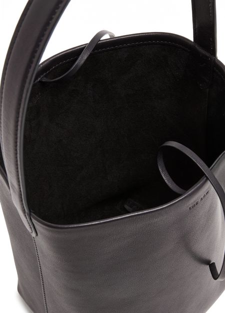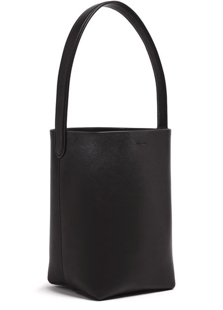 The Row's N/S Park Tote small bag showcases a single handle for effortless carrying. Its embossed logo adds a touch of sophistication, while visible topstitching enhances durability. The thin strap offers a delicate contrast, making this tote a perfect blend of elegance and practicality for any modern wardrobe.