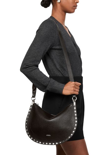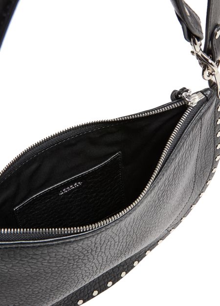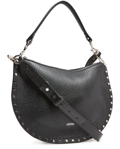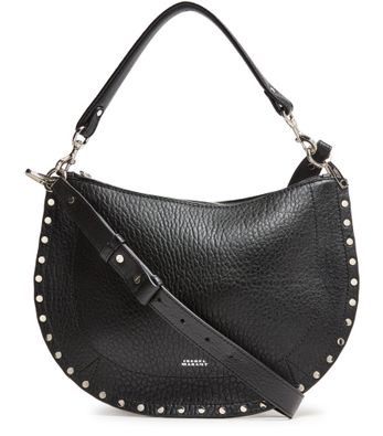 Reveal Isabel Marant's Oskan soft zip bag, a masterpiece of grained leather craftsmanship. This shoulder bag features a single handle and an adjustable, detachable strap for versatile wear. Adorned with studded details and a front logo, it offers a single compartment with an interior pocket, all secured by a zipper closure.