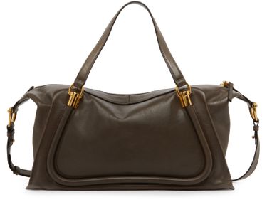 Chloé's Paraty 24 handbag combines elegance and functionality. With a zipper closure and a single compartment, it keeps essentials secure. The gold finish adds a touch of luxury, while double handles and a thin strap allow for versatile wear. Interior patch pockets and visible topstitching enhance its sophisticated design.