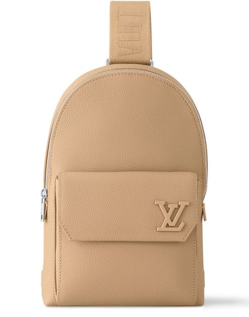 Inspired by the popular Takeoff Backpack, the Pilot Slingbag features a rounded shape, a front flap, and the signature details of the LV Aerogram Collection. The magnetic closure enables easy access to belongings while keeping them secure. The adjustable strap can be attached to the left or right side of the bag.