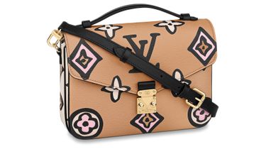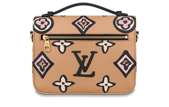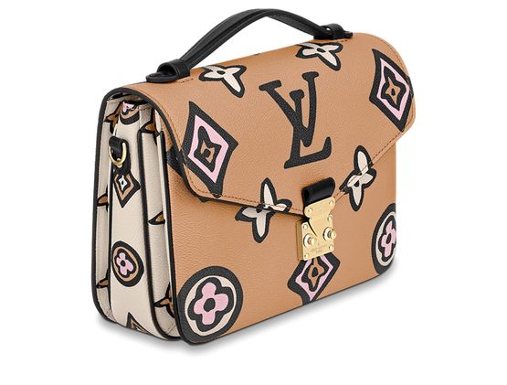 The Pochette Métis handbag in Monogram canvas features a vibrant pattern created for the Fall 2021 Wild at Heart capsule. Reinterpreting an archival design from 1924, the print’s hand-painted look gives this bag a bold, graphic presence. It is fitted with a removable long strap and a gold-finish S-lock, for a refined, signature touch.