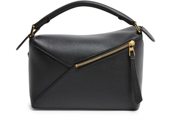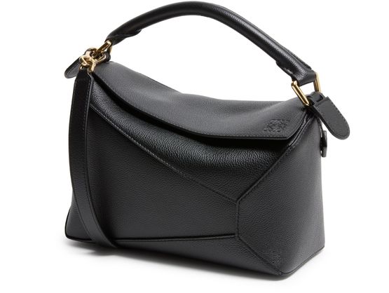 Reveal Loewe's Puzzle Edge small bag, crafted from grained leather with a single handle and metallic finish. Visible stitching and a refined flap closure highlight the brand’s signature craftsmanship, while the compact silhouette offers a modern, versatile accessory for any occasion.