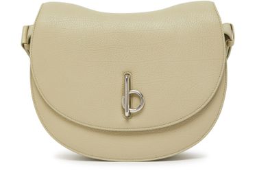 Burberry's Rocking Horse Handbag showcases exquisite craftsmanship with visible topstitching and a sleek flap closure. Its single compartment is perfect for essentials, while the thin strap allows it to be worn on the shoulder. A metallic logo on the front and silver-lettered logo elevate its chic appeal, making it a timeless accessory.