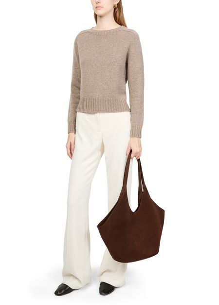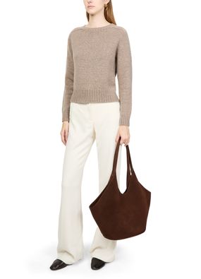 Reveal Bompard's cashmere round-neck sweater, a perfect blend of style and comfort. This regular fit, long-sleeved piece features a ribbed texture, offering a modern cropped silhouette. Ideal for layering, it effortlessly transitions from casual to chic, making it a versatile addition to any wardrobe.