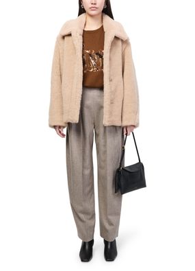 Reveal Max Mara's round neck sweater, featuring a round neck and long sleeves for a refined silhouette. The ribbed texture and visible stitching add modern flair, while the front logo and shimmering sequin details make this piece perfect for elevating both casual and sophisticated looks.
