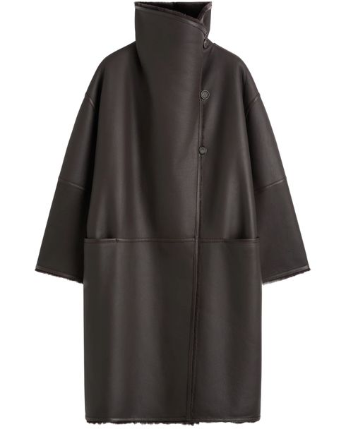 Reveal Toteme's wraparound long coat, featuring a padded texture and a collarless silhouette for a refined, modern look. The button fastening and patch pockets add practical elegance, while the long sleeves and streamlined fit make this piece a versatile choice for any sophisticated wardrobe.