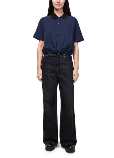 Reveal Moncler's short-sleeved top, featuring a refined chest logo and a silhouette gathered at the waist for a flattering fit. The soft fabric and modern cut make this piece ideal for versatile styling, whether paired with tailored pants or casual denim for a polished look.