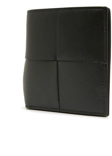 Bottega Veneta's Slim Bi-Fold Wallet is a small wallet crafted from smooth leather with the brand's signature orthogonal weaving. It features visible stitching and a foldover structure. The interior includes compartments for bank notes and multiple card compartments. The wallet also features an embossed logo for a touch of elegance.