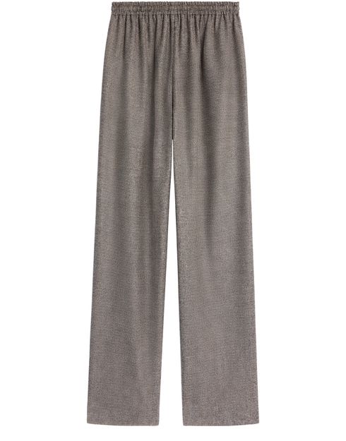 Celine's Straight track pants offer a luxurious blend of wool and cashmere, combining a loose fit with a high-waisted silhouette for effortless elegance. The elasticated waistband, complete with adjustable drawstring and Celine's Paris-engraved metal aglets, ensures a perfect fit. With two side pockets, these pants are both stylish and practical, made in Italy.