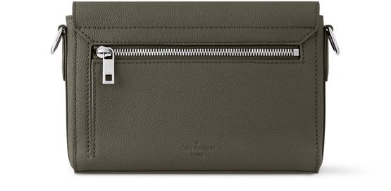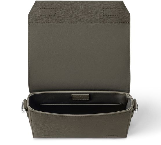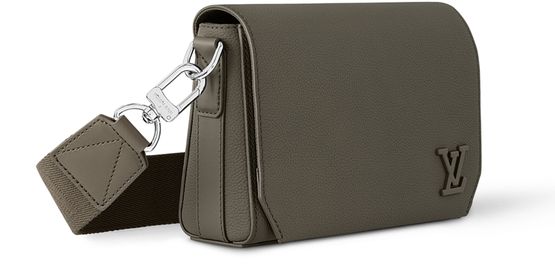 The sleek Takeoff Messenger PM in grained cowhide leather is a compact messenger bag. The bias-cut corners on the flap and the discreet metallic LV initials sign this bag as a part of the LV Aerogram Collection. Spacious enough for a phone, small wallet, and keys, this bag features an easy-to-use magnetic flap.