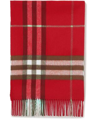 The dynamic tartan of this large fringed Burberry scarf will appeal to women with its iconic allure and modern look.
