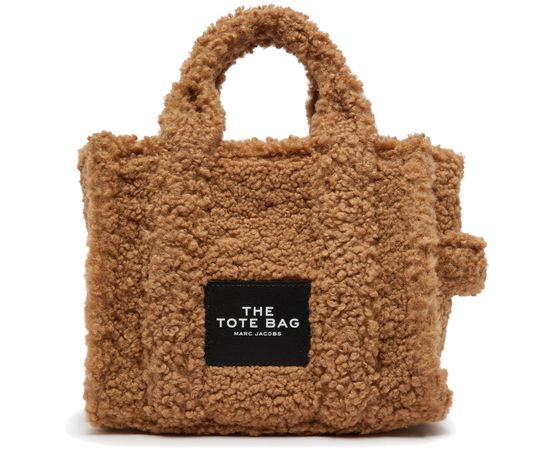 The Marc Jacobs Small Tote Teddy bag is a versatile accessory that can be hand carried, worn on the shoulder, or crossbody. It features sturdy handles and a detachable strap for convenience. The bag also includes a carabiner for added functionality and a label with the iconic Marc Jacobs logo for a touch of luxury.