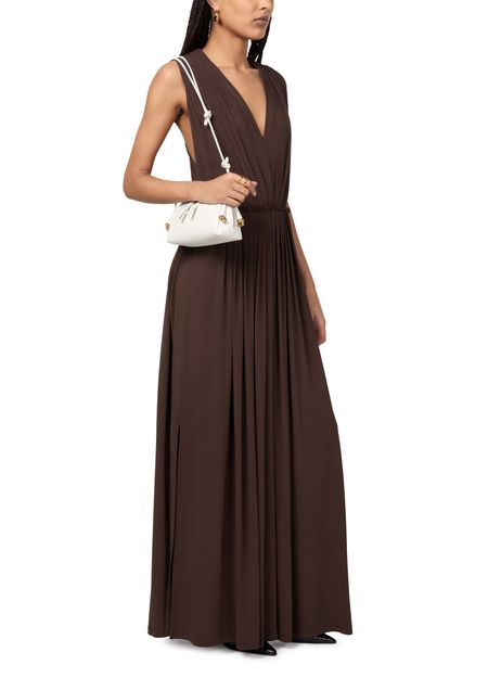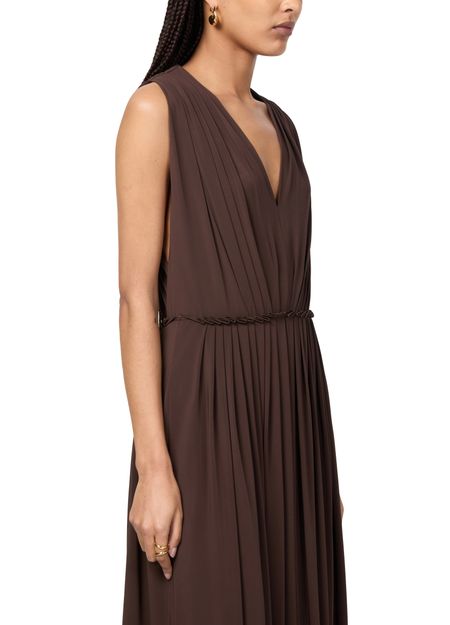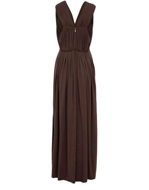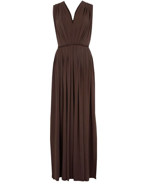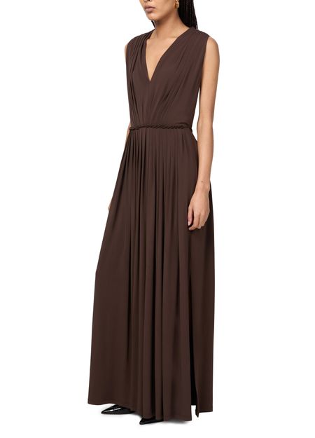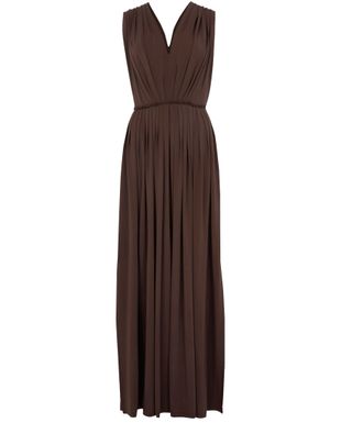 Max Mara's Walter draped maxi jersey dress showcases a flared silhouette that gracefully flows with every step. Its sleeveless design and v-neck back create an elegant allure, while the concealed back zipper closure ensures a seamless fit. Visible stitching adds a touch of sophistication, making it perfect for any occasion.