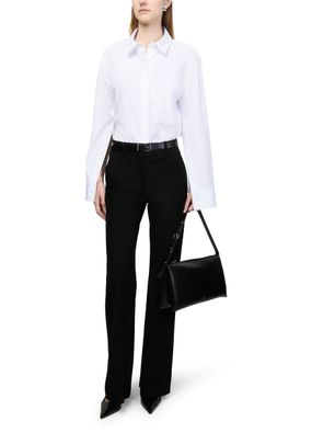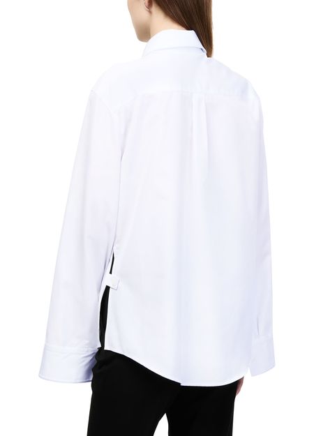 Reveal Courreges's 2 pocket poplin shirt, a refined top featuring long sleeves and a sleek concealed closure. The crisp poplin fabric and subtle breast pockets create a polished silhouette, making it a versatile choice for both professional and casual ensembles.