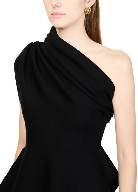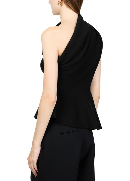 Introducing Khaite's draped top, a masterpiece of modern elegance. This slim fit piece features a bare shoulder design and a short sleeve, creating a striking silhouette. The fitted waist enhances its chic appeal, making it perfect for both casual and formal occasions.