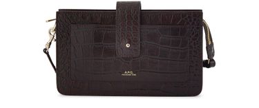 The Albane clutch is by A.P.C. The crocodile effect leather is very elegant. The front patch pocket is fastened with a magnetic flap.