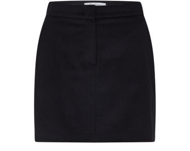 • Description : hook and concealed zipper closure, appliquéd logo, logo at the back, visible stitching, mini, welt pockets, back pocket, straight skirt.