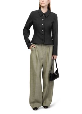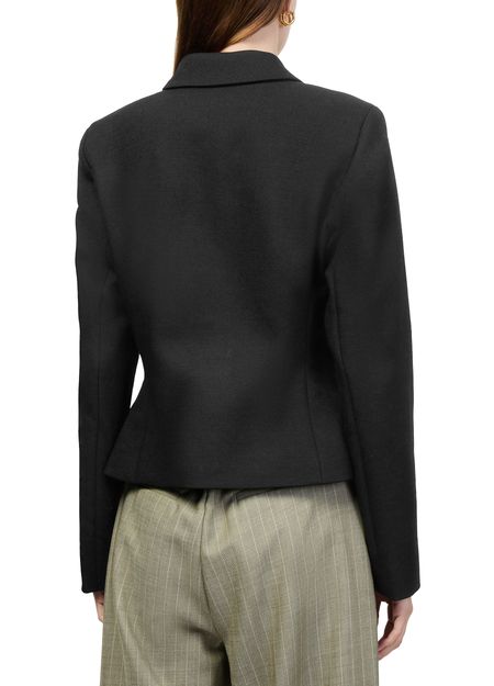 Reveal Skall Studio's Ari jacket, a short, long-sleeved piece with a refined button fastening. Its streamlined silhouette and casual style make it a versatile addition to any wardrobe, easily transitioning from day to night. Subtle details and quality craftsmanship ensure a polished, modern look.