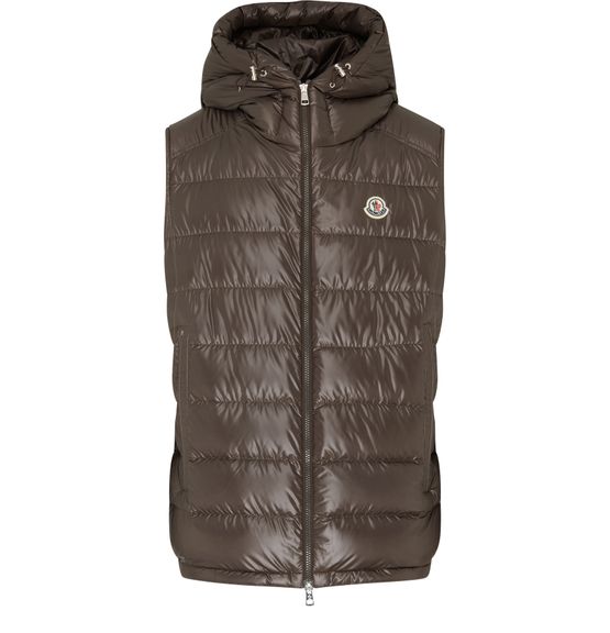 Moncler's Barant sleeveless down jacket offers a sleeveless vest design with a high neck and a secure zipper closure. Its short silhouette is complemented by an appliquéd logo on the front, while side welt pockets add practicality. This stylish piece is perfect for layering, merging functionality with contemporary fashion effortlessly.