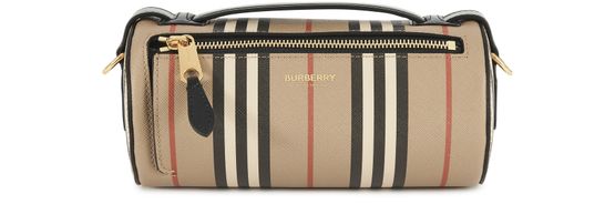 This eco-friendly canvas barrel bag is an elegant Burberry creation. It features the signature color palette and a sophisticated design. Wear this piece in the hand or on the shoulder using the strap.