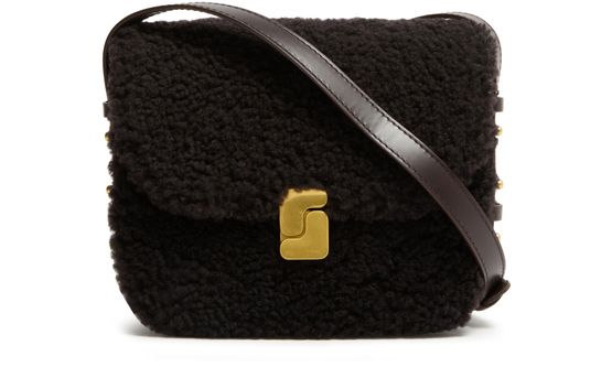 Description : magnetic closure, flap closure, gold finish, single handle, front logo, logo in gold letters, contrast stitching, adjustable strap, thin strap.
