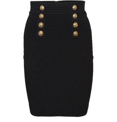 This buttoned skirt proudly carries the Balmain signature. Combining a high-rise waist and a fitted cut, this fine knit piece is boosted by two rows of buttons on the front.
